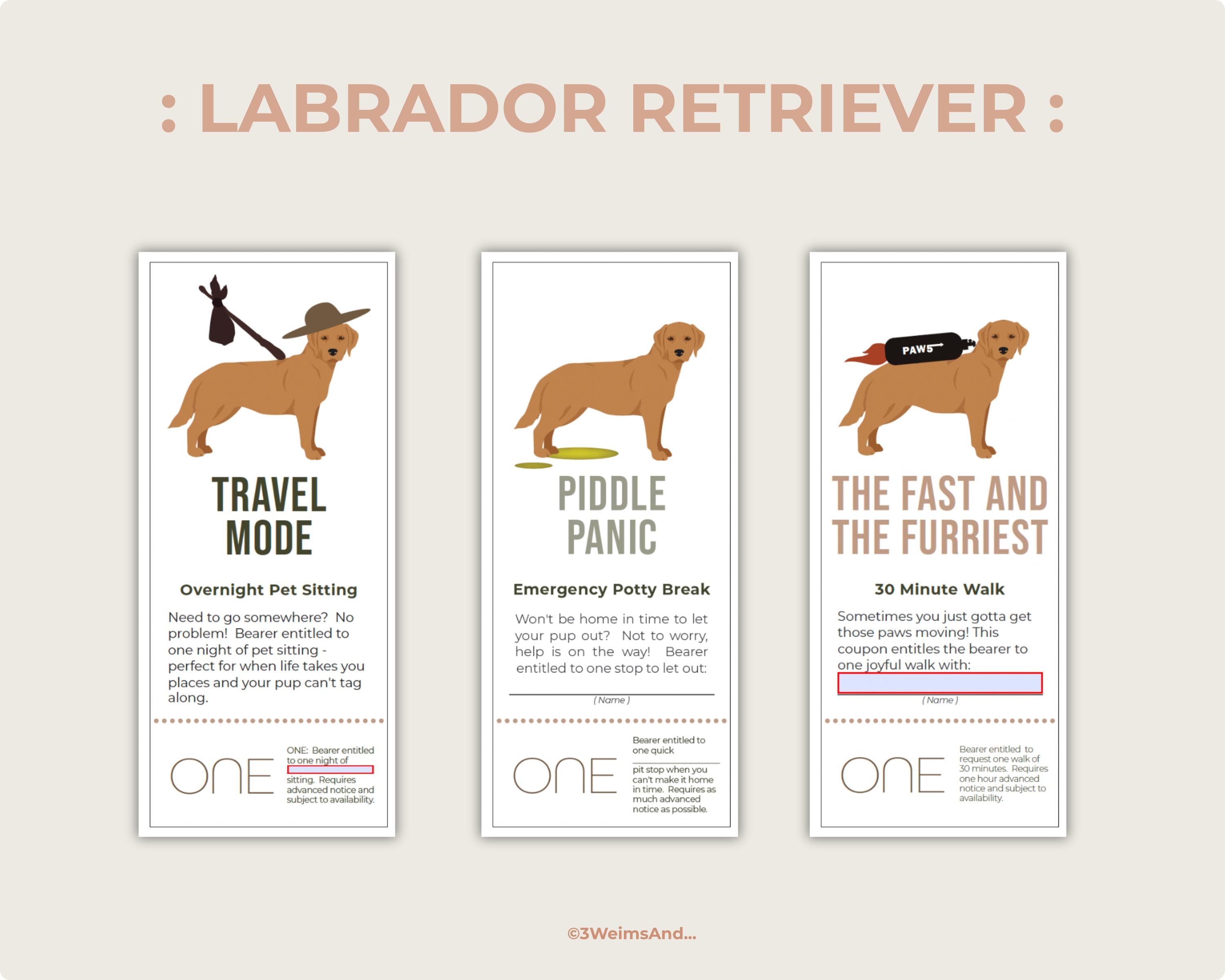Do you secretly love taking care of your best friend’s dog? Then this gift is not only for them — it’s for you too! Give a thoughtful, “for the dog” gift with this editable Golden Retriever Dog Coupon set — perfect for dog walking, pet sitting, and puppy care surprises. This printable voucher makes an adorable dog lover gift, sitter thank-you, or last-minute appreciation gift you can personalize and print at home.