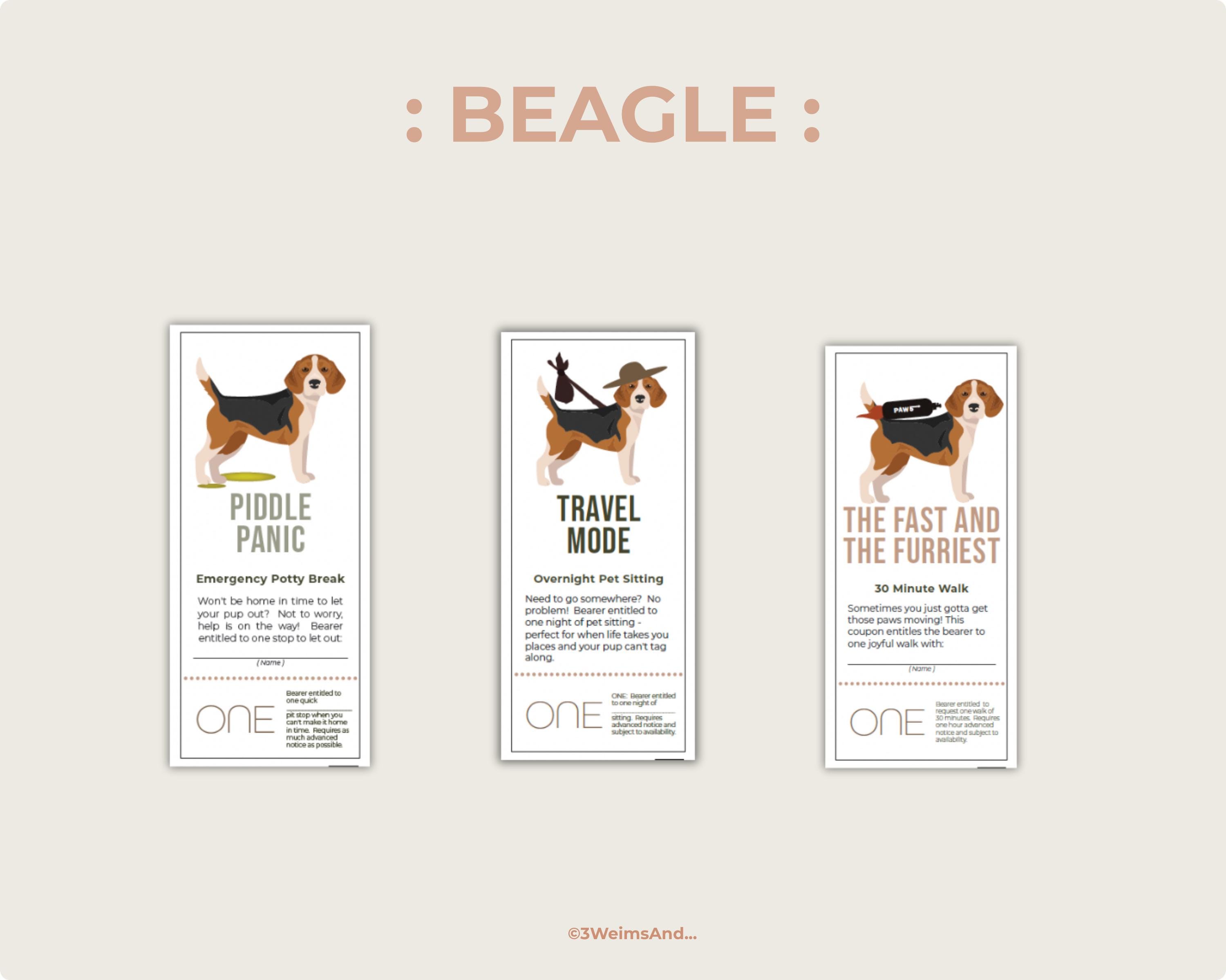 Do you secretly love taking care of your best friend’s dog? Then this gift is not only for them — it’s for you too! Give a thoughtful, “for the dog” gift with this editable Beagle Dog Coupon set — perfect for dog walking, pet sitting, and puppy care surprises. This printable voucher makes an adorable dog lover gift, sitter thank-you, or last-minute appreciation gift you can personalize and print at home.