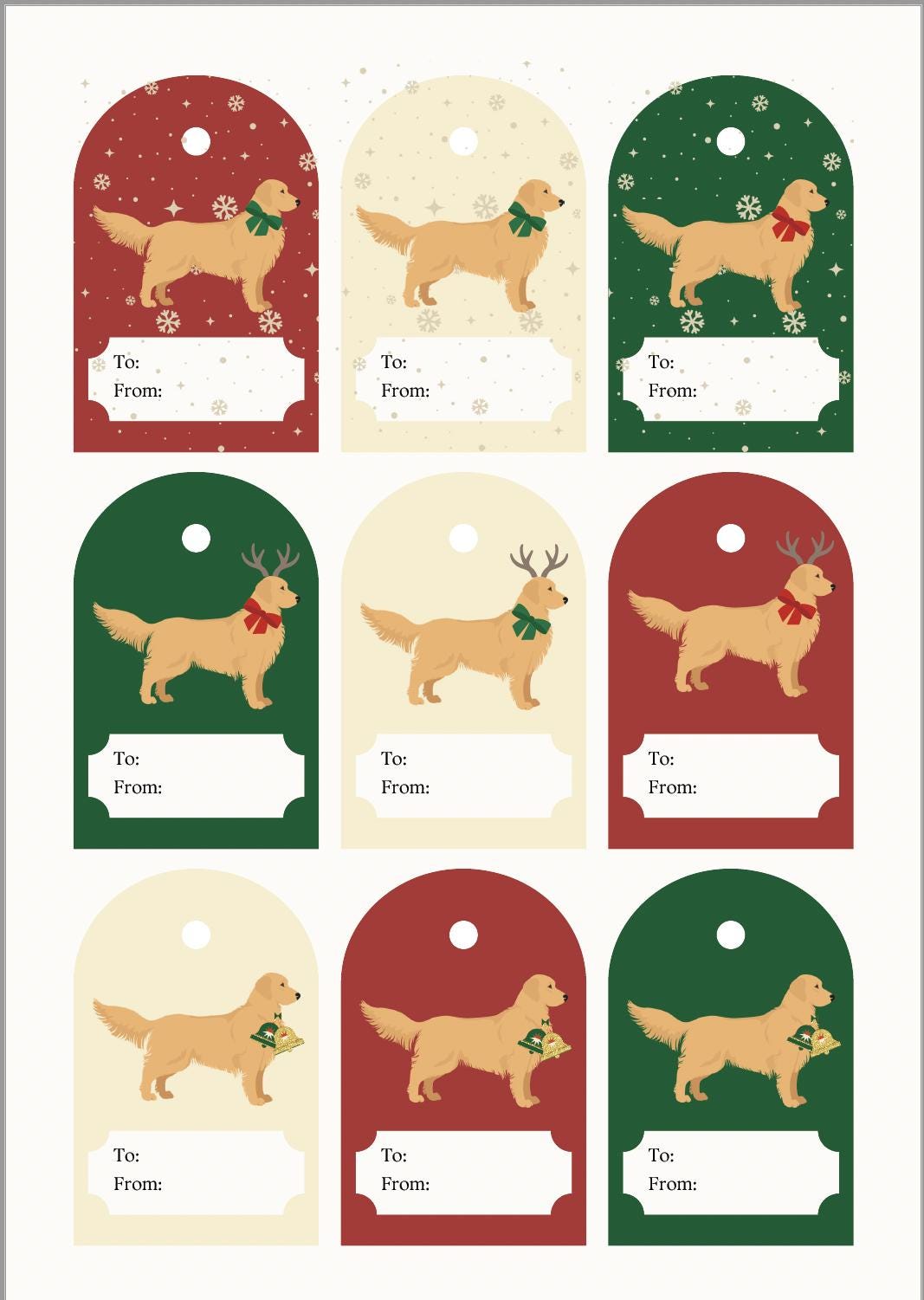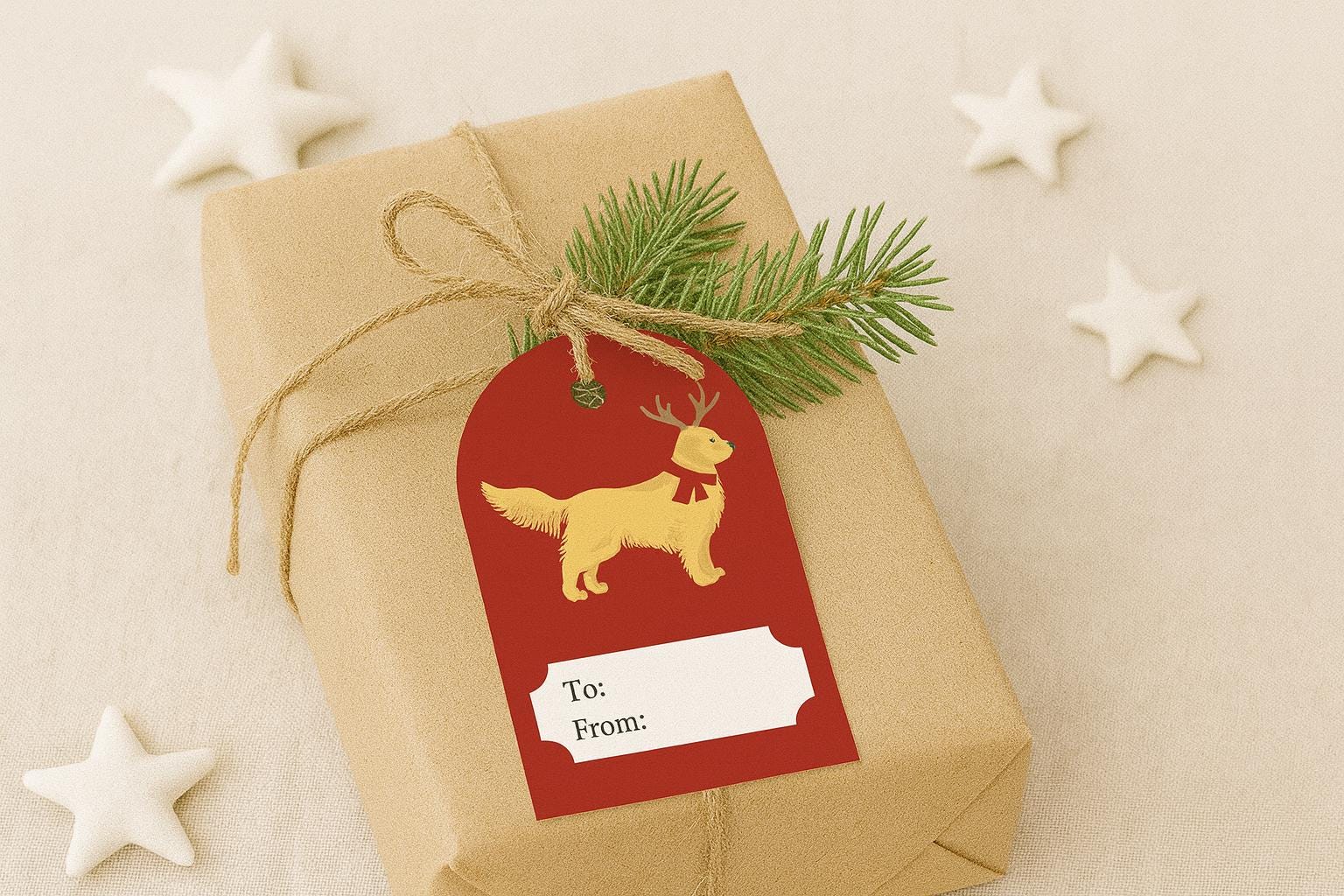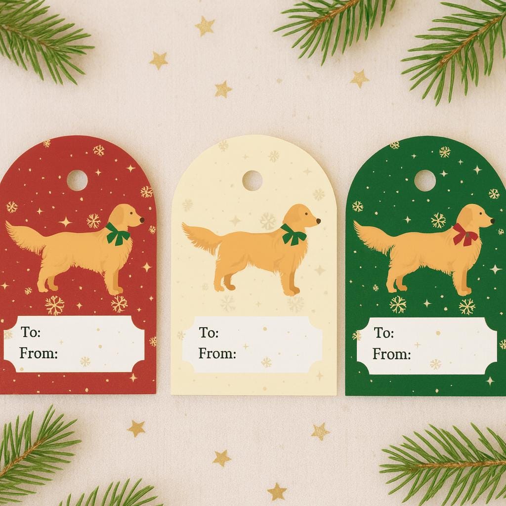 Christmas Gift Tags, Dog gift tags | Printable, Editable, Instant Download | Present Tags, Merry Christmas | Golden Retriever
