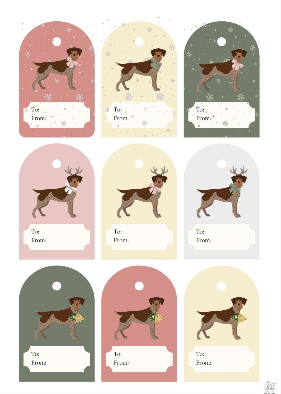 🐾 🐾 Personalized CHRISTMAS German Wirehaired Pointer (GWP) To From GIFT TAGS | Christmas Printables | INSTANT DOWNLOAD | Gift tag template | Christmas favor tags